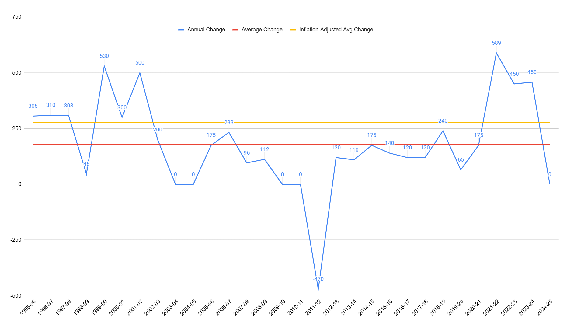 From the first foundation allowance of $4,200 per pupil in 1994-95 to the $9,608 for the 2024-25 fiscal year, the path has been consistently inconsistent.